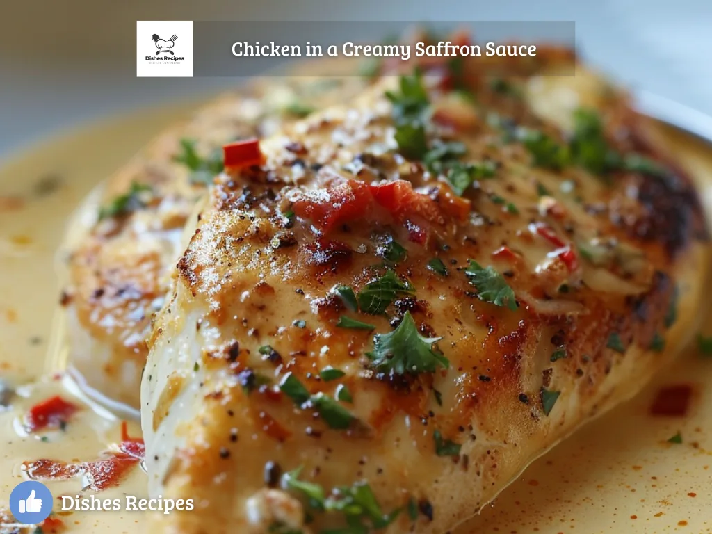 Discover "A Sensational Saffron Dream: Creamy Chicken Delight" recipe featuring tender chicken, aromatic saffron, rich cream, garlic, and herbs for a luxurious meal.