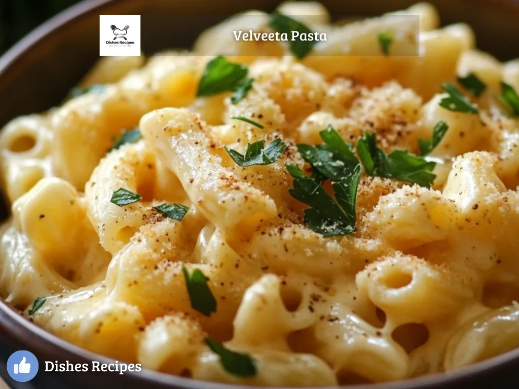 Indulge in Creamy Velvet Delight, a luscious Velveeta pasta dish featuring creamy cheese, tender pasta, garlic, and fresh herbs for the ultimate comfort meal.