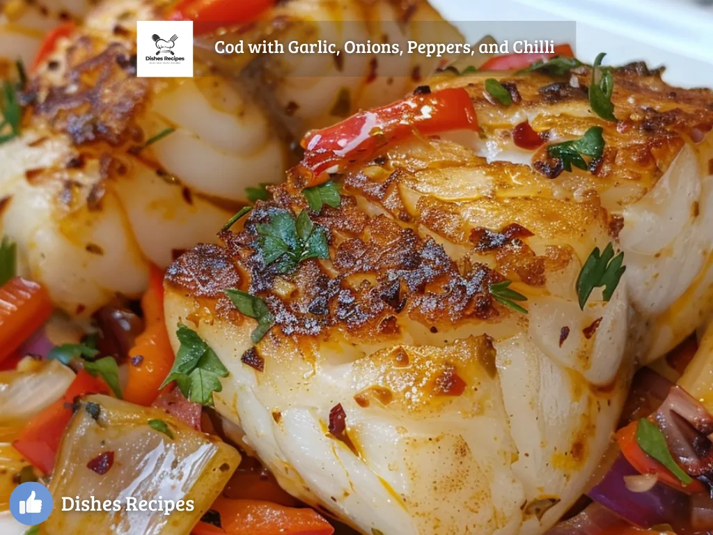 Spice-Kissed Cod: A Flavorful Dance with Garlic, Onions, and Peppers