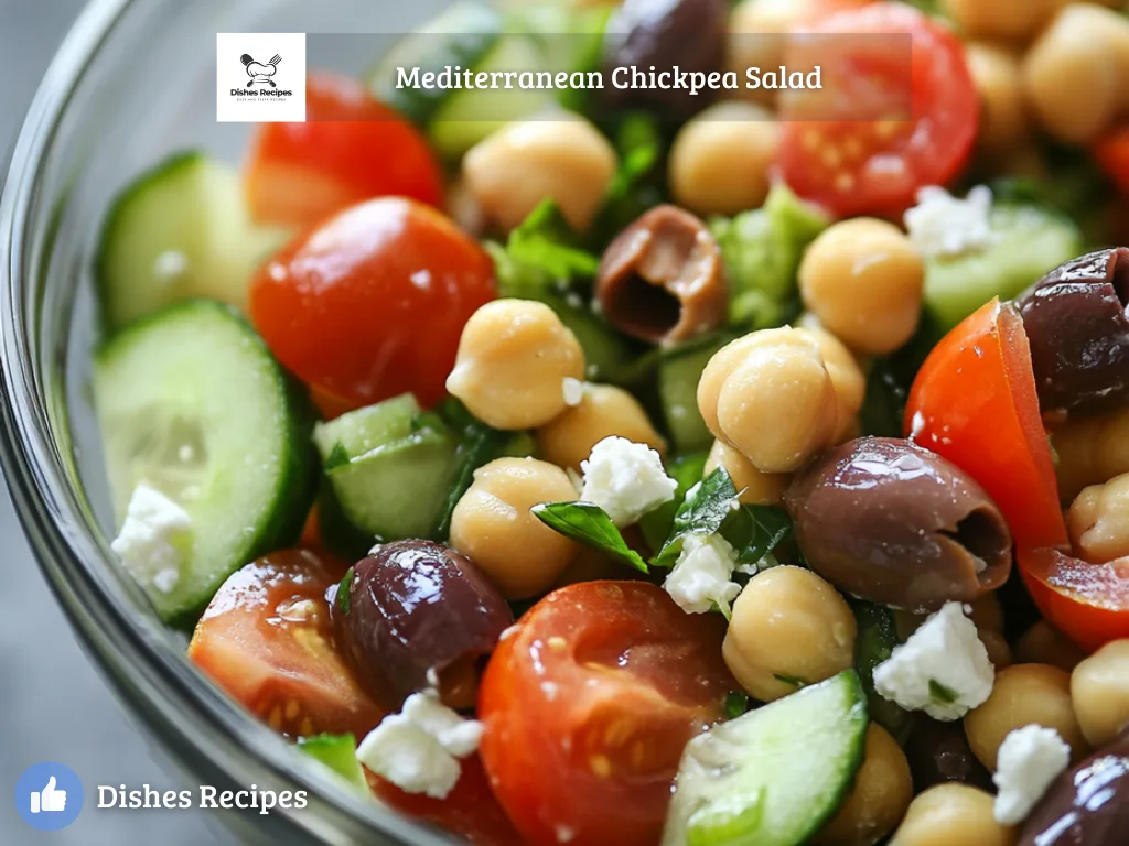 Discover the vibrant flavors of the Zesty Mediterranean Chickpea Delight, a salad featuring chickpeas, olives, tomatoes, and feta, perfect for a refreshing meal.